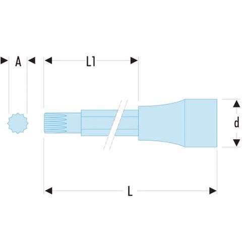 Schroevendraaierdop 1/2 lange bit met meervoudige vertanding XZN
