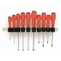 - Set van 10 sleuf-, Phillips- en Pozidriv-schroevendraaiers.