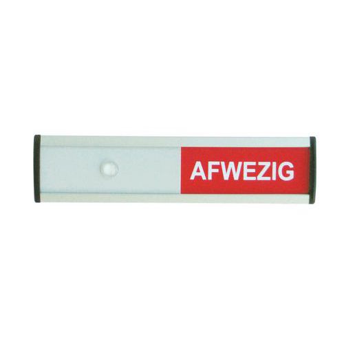 Uitsluitend geschikt voor gebruik binnenshuis. Verschuifbaar tekstvlak. Schuifbordje voorzien van een zelfklevende laag. Witte tekst op groene of rode ondergrond. Wanneer de cursor rechts staat wordt de tekst in het groen weergegeven, wanneer hij links staat wordt de tekst rood.