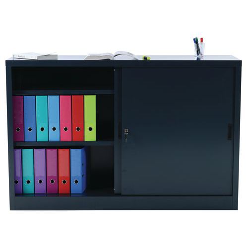 Zelfbouwkast met schuifdeur - Laag - L 160 cm - Manutan Expert Schuifdeurkast vergrendelbaar met behulp van het slot. Verstelbare legborden van 36 mm voor uw hangmappen.