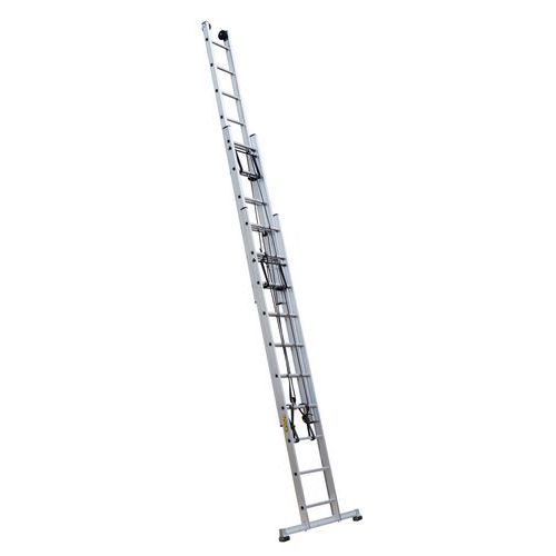 - Schuifladder 3-delig, met aluminium stabilisator en voeten van twee materialen.