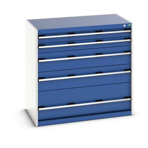 Schuifladenkast SL-10610-5.2. met 5 Schuifladen VS. RAL 7035/5010 Gemaakt in het UK Max. belasting (kg) : 1500