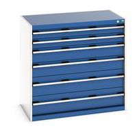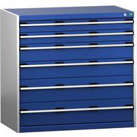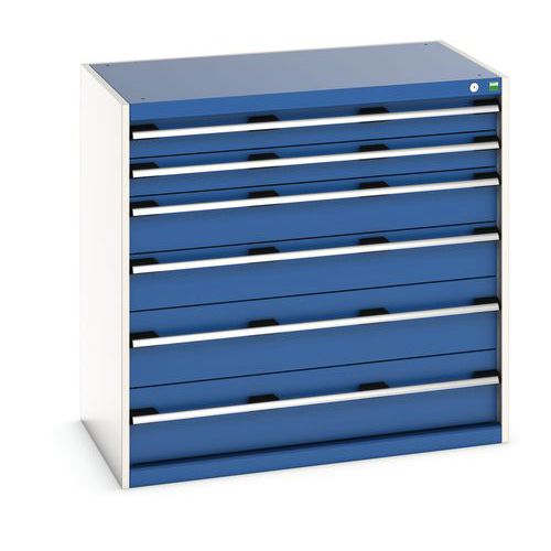 Schuifladenkast SL-10610-6.4. met 6 Schuifladen VS. RAL 7035/5010 Gemaakt in het UK Max. belasting (kg) : 1500
