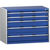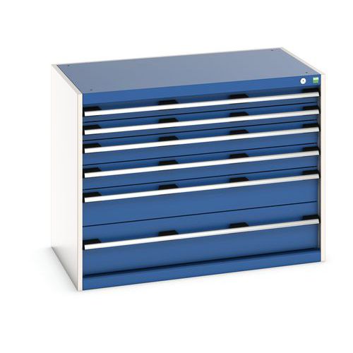 Schuifladenkast SL-1068-6.4. met 6 Schuifladen VS. RAL 7035/5010 Gemaakt in het UK Max. belasting (kg) : 1500