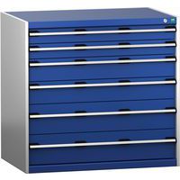 Schuifladenkast SL-10710-6.4. met 6 Schuifladen VS. RAL 7035/5010 Gemaakt in het UK Max. belasting (kg) : 1500