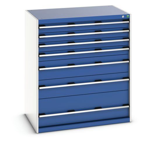 Schuifladenkast SL-10712-7.2. met 7 Schuifladen VS. RAL 7035/5010 Gemaakt in het UK Max. belasting (kg) : 1500