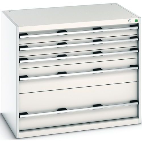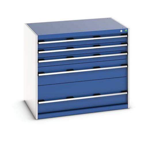 Schuifladenkast SL-1079-5.2. met 5 Schuifladen VS. RAL 7035/5010 Gemaakt in het UK Max. belasting (kg) : 1500