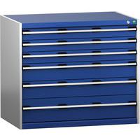 Schuifladenkast SL-1079-6.4. met 6 Schuifladen VS. RAL 7035/5010 Gemaakt in het UK Max. belasting (kg) : 1500