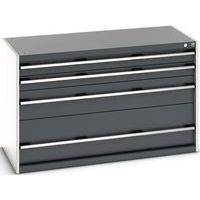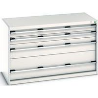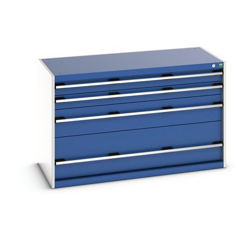 Schuifladenkast SL-1368-4.2. met 4 Schuifladen VS. RAL 7035/5010 Gemaakt in het UK Max. belasting (kg) : 1500
