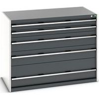 Schuifladenkast SL-13710-5.4. met 5 Schuifladen VS. RAL 7035/5010 Gemaakt in het UK Max. belasting (kg) : 1500