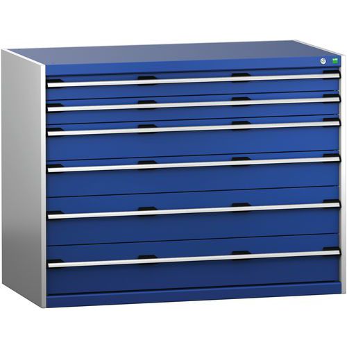 Schuifladenkast SL-13710-6.2. met 6 Schuifladen VS. RAL 7035/5010 Gemaakt in het UK Max. belasting (kg) : 1500