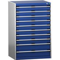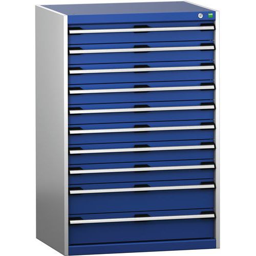 Schuifladenkast SL-8612-10.4. met 10 Schuifladen VS. RAL 7035/5010 Gemaakt in het UK Max. belasting (kg) : 1500