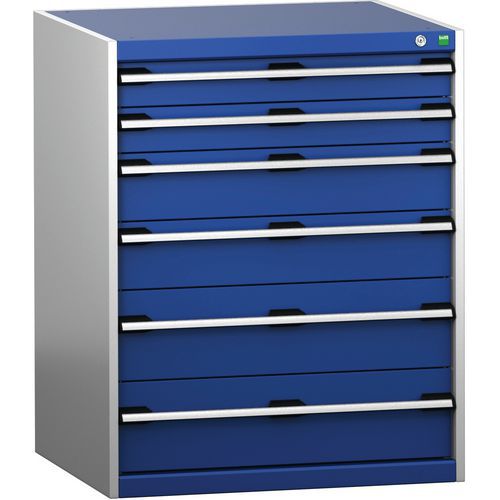 Schuifladenkast SL-8710-6.2. met 6 Schuifladen VS. RAL 7035/5010 Gemaakt in het UK Max. belasting (kg) : 1500