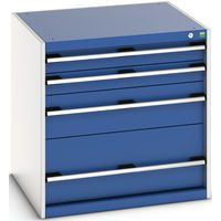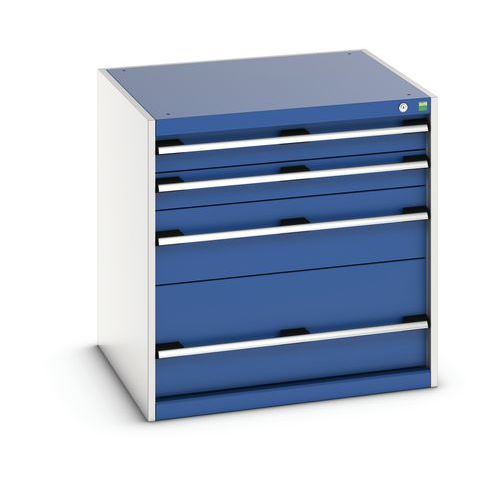 Schuifladenkast SL-878-4.2. met 4 Schuifladen VS. RAL 7035/5010 Gemaakt in het UK Max. belasting (kg) : 1500