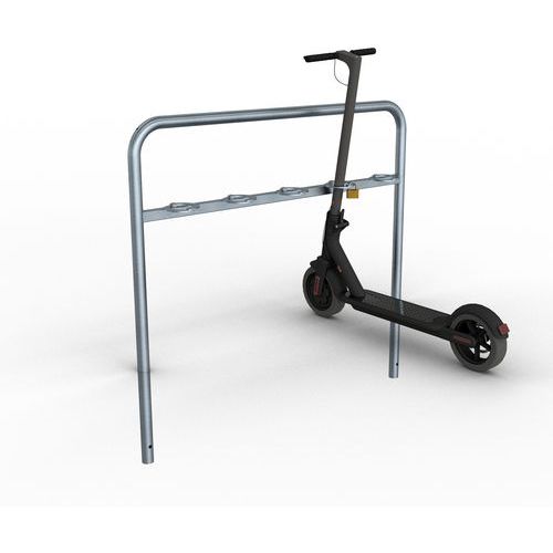 | Productnaam | Scooterstandaard in beton met afsluitbaar ring voor hangslot, Totale lengte: 1500 mm, Aantal plaatsen: 5 |