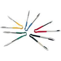 - Serveertang in 'eikenbladvorm' van roestvrij staal met blauw handvat.