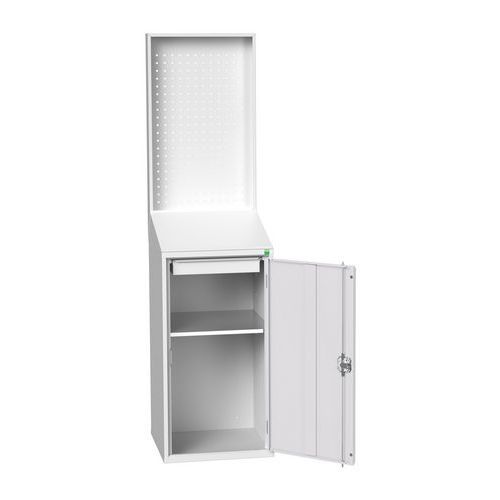 Servicepost voorzien van een geperforeerd achterpaneel en een hoge plank.