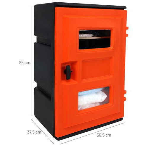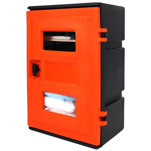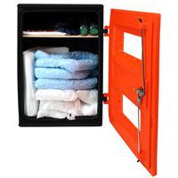 Middelgrote set voor complete bescherming bij vloeistoflekkage. Bestand tegen de meeste chemische producten en uv-straling, dankzij de rubberen afdichting van automobielkwaliteit en de gegoten uv-blokkerende polycarbonaat vensters. 2 versies aangepast op het soort vervuiling: koolwaterstoffen of alle vloeistoffen. Eenvoudig toegankelijke en overzichtelijk geordende absorptiemiddelen en accessoires. Kast die door zijn formaat geschikt is voor zowel ophangen als neerzetten, geschikt voor plaatsing binnens- en buitenshuis.