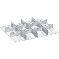 | Productnaam | Set-indelingsmateriaal 36x27E (bxdxh) 612x459x250 mm, Type: 3 wanden met uitsparingen en 8 tussenplaten |