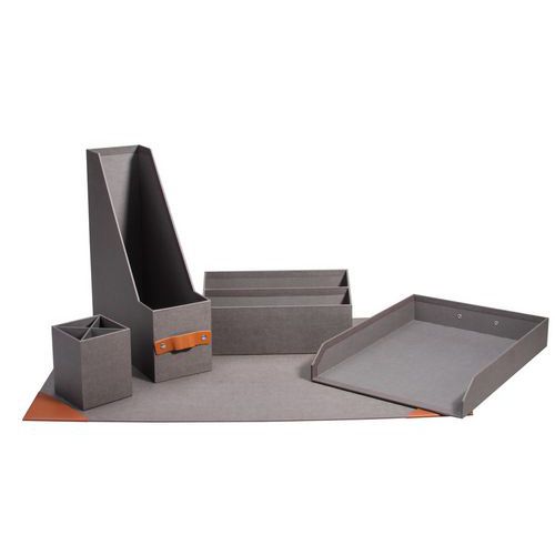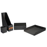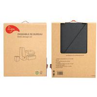 Bureauset SIGN Reborn. Van gerecycled papier en karton + polyurethaan. 4-delig: berging voor documenten, pennenbakje, A4-brievenbak en ordner.