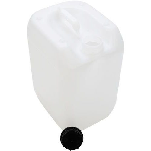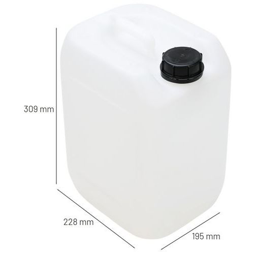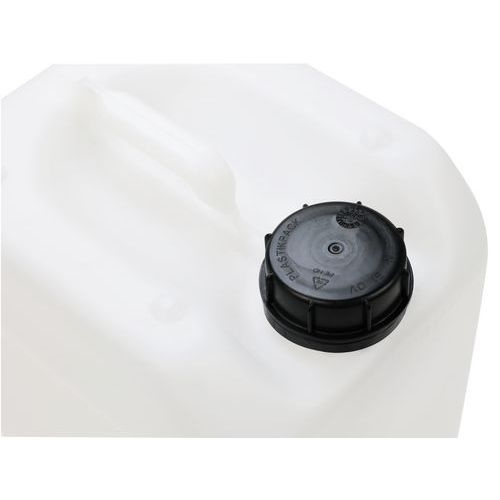 Kunststof jerrycan goedgekeurd voor het transport van goederen. Hoge bestendigheid tegen vallen, hydraulische druk en stapelen. De perfect dichte verpakking: bewezen door luchtdruktest. Jerrycan, comfortabel dragen en verplaatsen met bovenste handgreep. Grote opening met schroefdop, scharnierend en indicator voor opening.