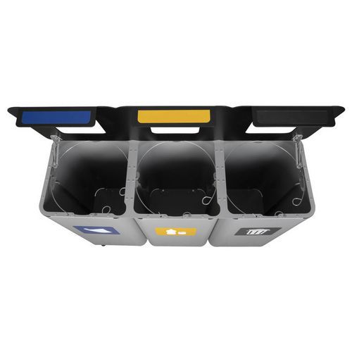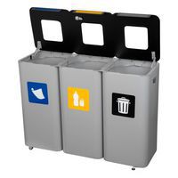 Set recyclingbakken, metaal en flexibel, Totale inhoud: 210 L, Opening: Gleuf, Materiaal: Metaal