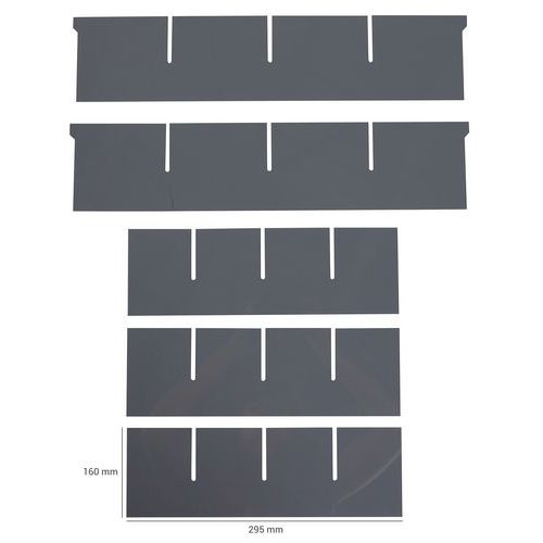 Set tussenschotten voor kast SF1 - Manutan Expert Set tussenschotten voor een flexibele indeling van de laden in uw SF1-kasten. Maak uw eigen onderverdeling met behulp van de verwijderbare tussenschotten en onderverdelers.