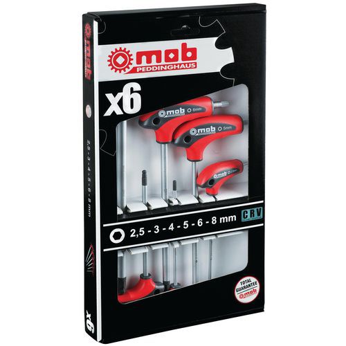| Productnaam | Set stiftsleutel met T-greep 6-kant, Aantal sleutels: 6, Maat (Afmetingen): 2.5 tot 8 mm |