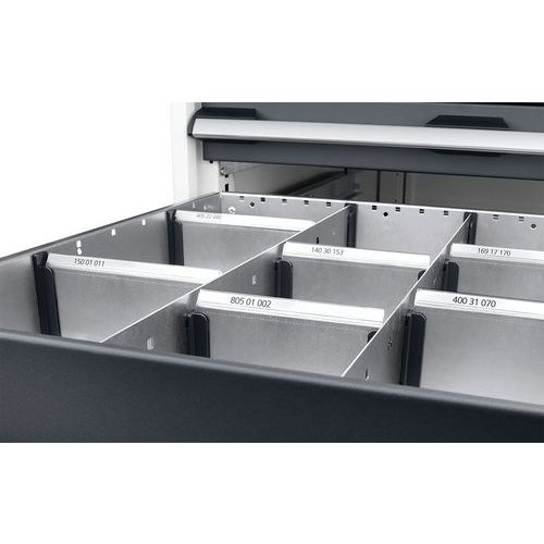 | Productnaam | Set tussenschotten voor werkplaatskast XL Bott, Type vakindeling: 2 tussenschotten, 7 ladeverdelers |