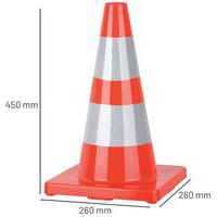 | Productnaam | Verkeerskegel met reflecterende strook 45 cm, Kleur: Oranje, Hoogte: 45 cm, Gewicht: 1480 g, materiaal: PVC |