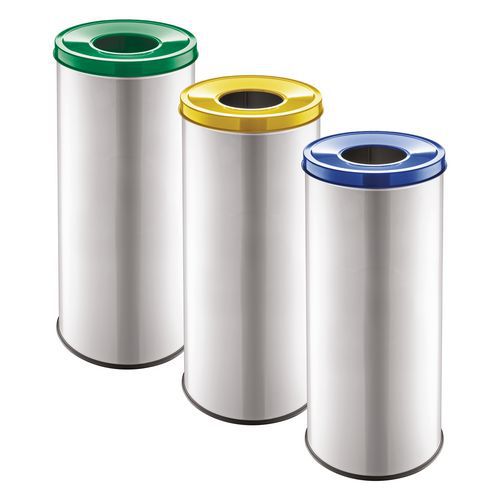 | Productnaam | Set van 3 metalen afvalbakken, Totale inhoud: 45 L, Opening: Duwen, Materiaal: Staal |