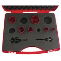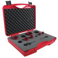 Koffer met 6 gatenzagen van staal van twee metalen. Ideaal voor installateurs van sanitair. Zaagdiepte 38 mm. Snijvlak van HSS-snelstaal, stevige stalen behuizing, minimale excentriciteit. Sleuven aan de zijkant van de gatenzaag voor het eenvoudig verwijderen van spaanders en uitgesneden onderdelen. De variabele zaagtanden zorgen voor moeiteloos, gelijkmatig en homogeen zagen.