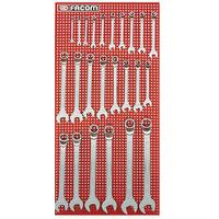 Set van haaks gebogen combinatiesleutels, metrisch, Aantal sleutels: 18, Omkeerbare ratel: nee