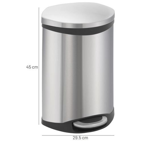 Opvallende schelpvormige pedaalemmer voorzien van gedempt deksel en kunststof binnenemmer. Fingerprint Proof.