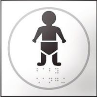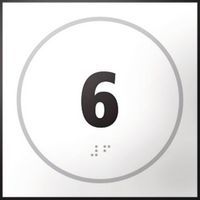 - Het symbool in reliëf is gekoppeld aan een brailletranscriptie.