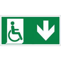 Dit evacuatiebord geeft de uitgang aan voor gehandicapten.