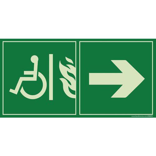 - Het is een bord dat wordt gebruikt om de toegang tot een veilige wachtruimte aan de rechterkant aan te geven voor mensen met beperkte mobiliteit.