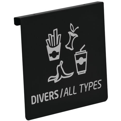 | Productnaam | Signalisatieplaat afvalsortering voor Tubag, Kleur: Donkergrijs, Materiaal: Metaal |