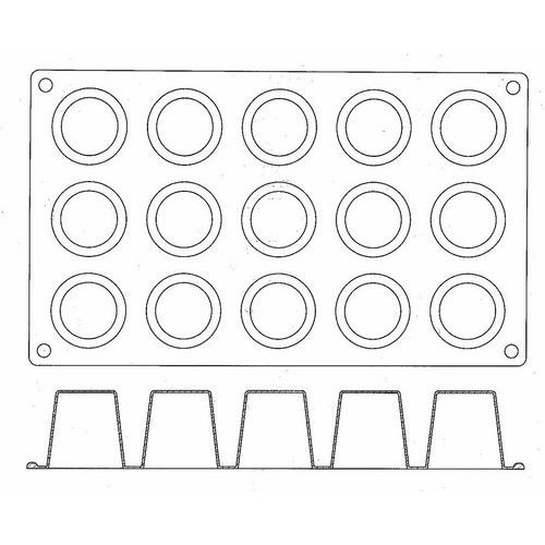 | Productnaam | Siliconen bakvorm voor 15 ronde darioles, Hoogte: 4.5 cm, Lengte: 300 mm, Materiaal: Silicone |