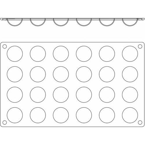 | Productnaam | Siliconen bakvorm voor 24 halve bollen, Hoogte: 1.5 cm, Lengte: 300 mm, Materiaal: Silicone, Breedte: 176 mm |