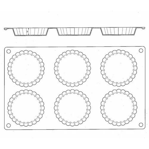 | Productnaam | Siliconen bakvorm voor 6 geribbeld taart, Hoogte: 1.8 cm, Lengte: 300 mm, Materiaal: Silicone |