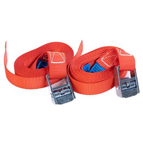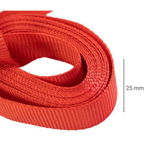 | Productnaam | Sjorband met gesp, Lengtes: 3 m, Veilig hefvermogen: 250 kg, Breedte: 25 mm, Type haak: Gesp, Kleur: Rood |