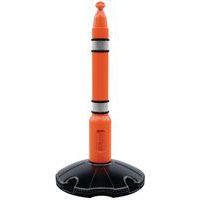Stevige oranje paal van 1 m hoog met reflecterende strips en een voet die voor extra stabiliteit kan worden gevuld met maximaal 10 kg water of zand. Het slanke, professionele ontwerp past zowel binnen als buiten.