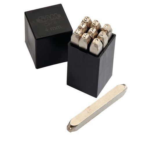 - Ponsen in koolstofstaal, vernikkeld, voor markering van staal met hardheid van 60 HRC.
