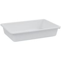 - Rechthoekige bak, gebroken wit, van HIPS-kunststof (high impact polystyreen).