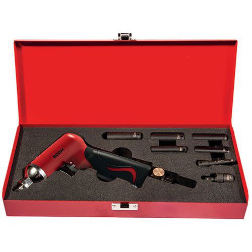 | Productnaam | Slagmoersleutel pneumatisch 1/4 inch in koffer met accessoires Rodac, Toerental onbelast: 10000 omw/min |