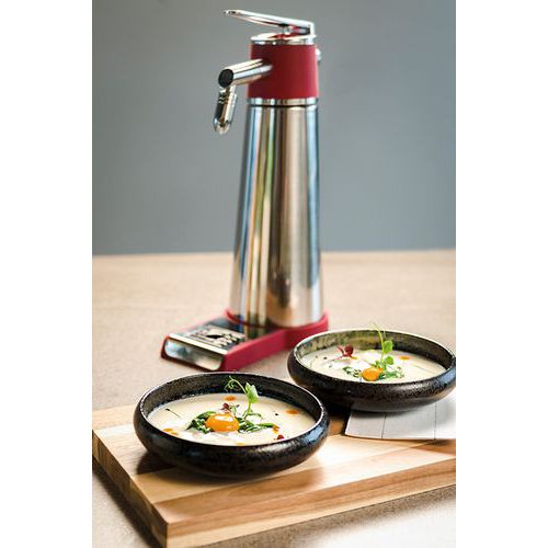 | Productnaam | Slagroomapparaat iSi Thermo Xpress Plus op voet, Kleur: Grijs, Hoogte: 36 cm, Materiaal: Staal |