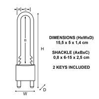 | Productnaam | Hangslot met sleutel met verstelbaar beugel 1950EURDCC, Beugel Ø: 8 mm, Aantal pinnetjes: 5, Breedte: 50 mm |