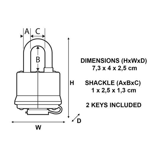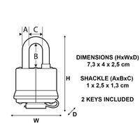 | Productnaam | Hangslot 40 mm blauw, Kleur: Blauw, Lengtes: 25 mm, Beugel Ø: 10 mm, Aantal pinnetjes: 4, Breedte: 40 mm |