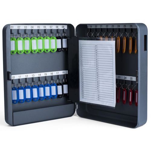Sleutelkast, Materiaal: Staal, Totale hoogte: 30 cm, Totale breedte: 24 cm, Kleur: Grijs, Aantal sleutels: 36